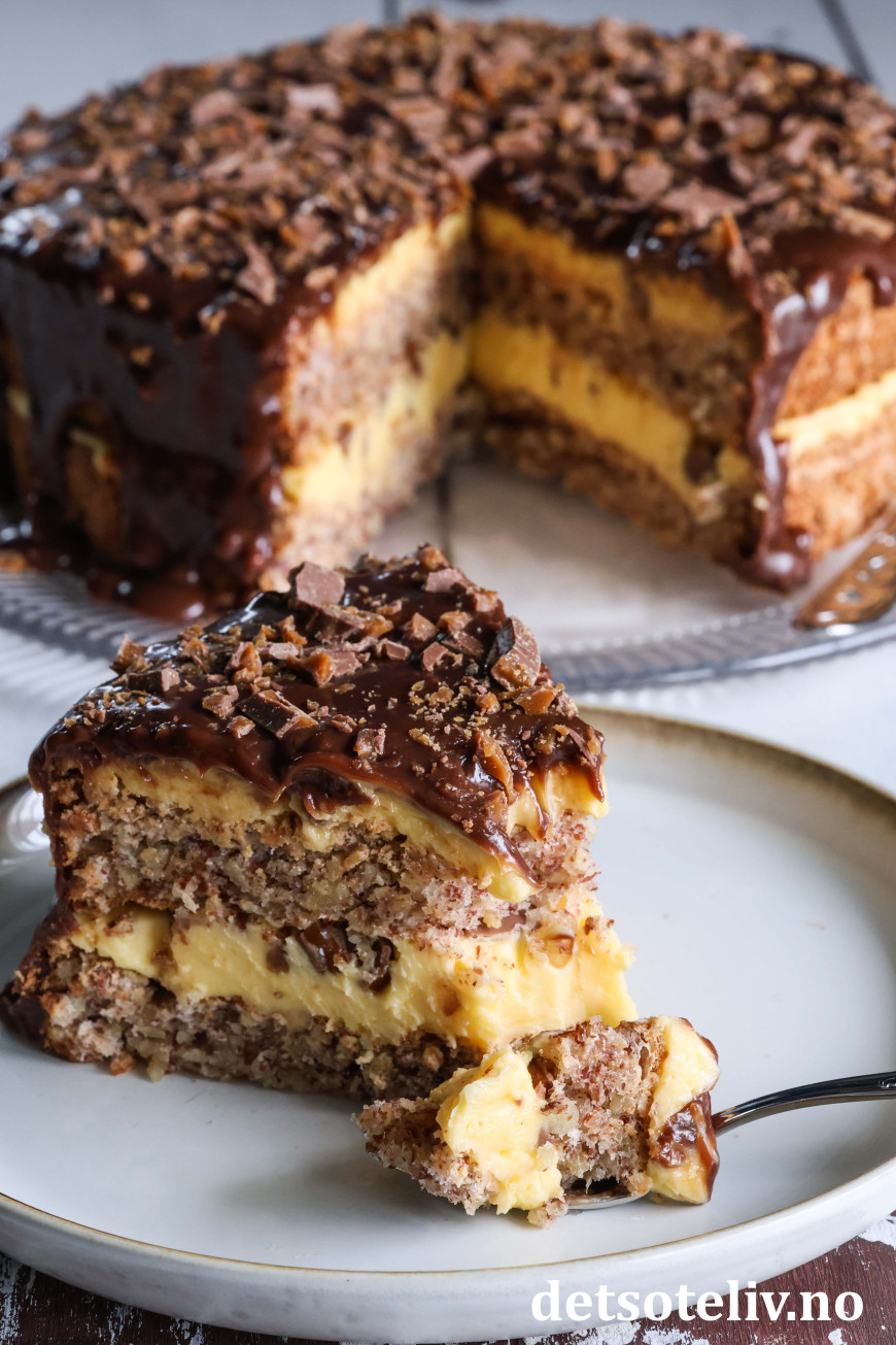 ♥ Daimkake er en lavere versjon av denne kaken. Se også Suksesskake med Daim og Suksesskake i langpanne med Daim.