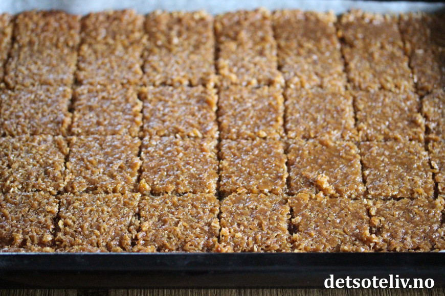 ♥ Det er lurt å ikke hvelve den stekte kaken ut av langpannen, fordi man da lett kan ødelegge toppingen for mye.