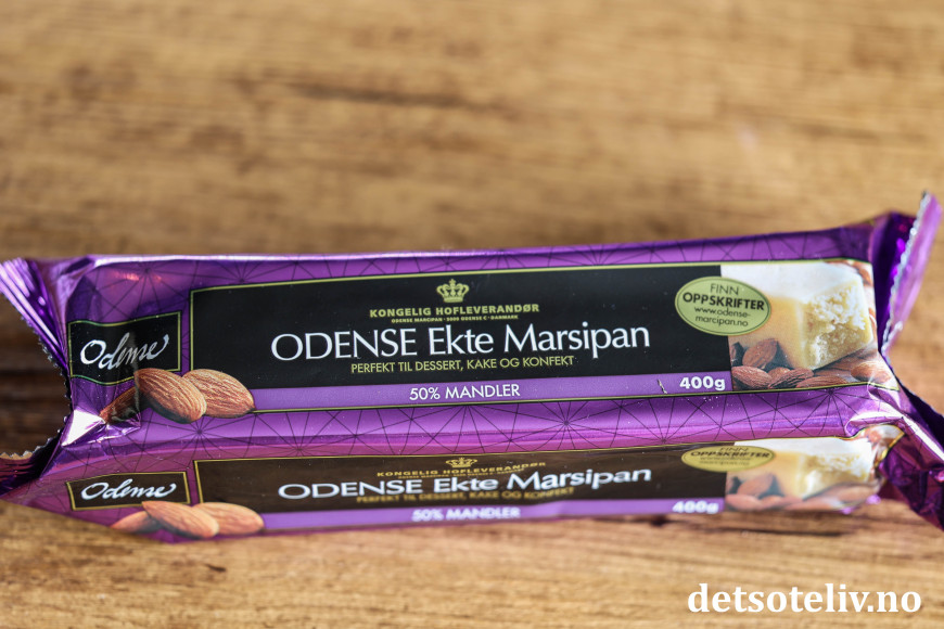 ♥ Det er viktig at du bruker såkalt ekte marsipan i deigen (lilla pakning fra Odense), som har mer enn 50 % mandelinnhold. Vanlig figurmarsipan tåler steking svært dårlig.