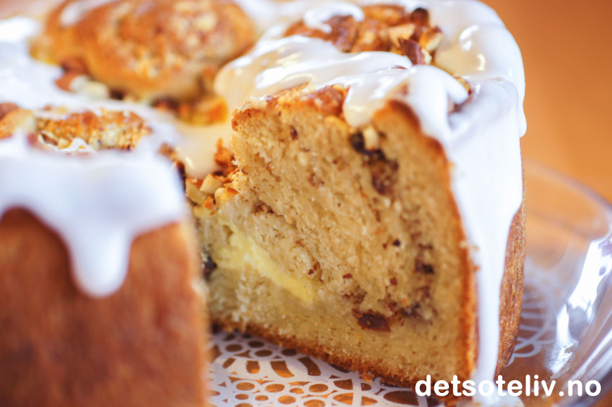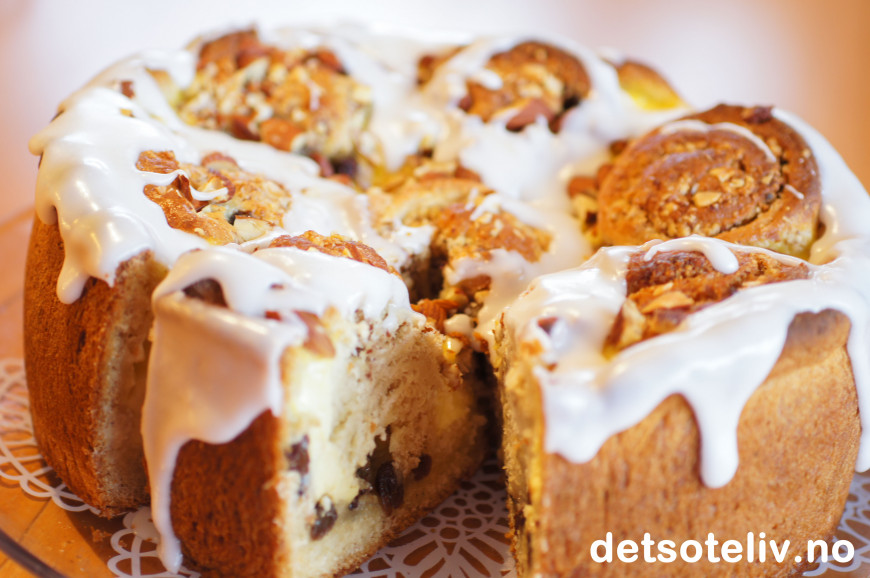 ♥ Som med all gjærbakst, smaker denne kaken aller best samme dag den er laget. Rester kan du sette i fryseren.
