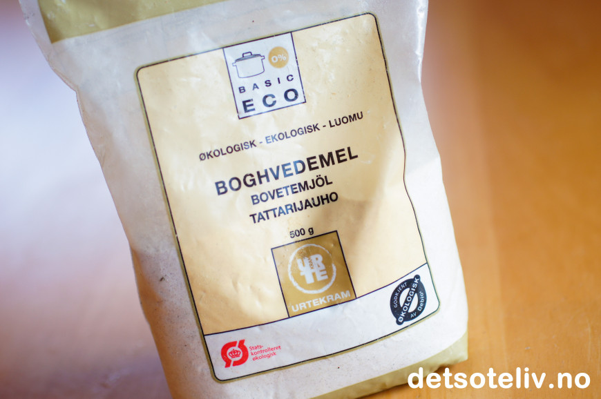 ♥ Bokhvete er faktisk ikke en kornsort, men små frø. Bokhvetemel er derfor 100 % glutenfritt og regnes som veldig sunt og lett fordøyelig. Det er ikke så lett å få tak i bokhvetemel i norske butikker, i hvert fall måtte jeg lete en stund. Jeg kjøpte dette i en helsekostforretning, men det er mulig at andre også selger dette sunne produktet bare at jeg ikke har fått det med meg.