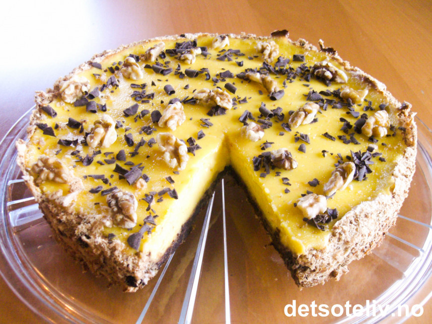 Fyllet kjennes litt løst ut når kaken tas ut av ovnen, men det vil stivne til når kaken avkjøles. Kaken er lettest å få ut av formen uten at den går i stykker om du lar kaken få stå i formen i kjøleskapet over natten.