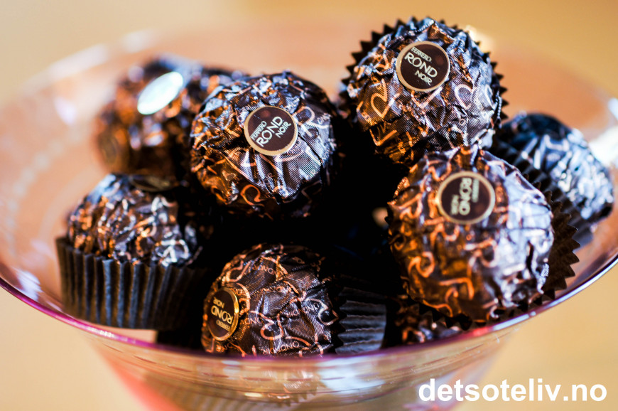 Personlig elsker jeg disse konfektkulene, som er fylt med mørk sjokoladefyll og en nøtt i midten.