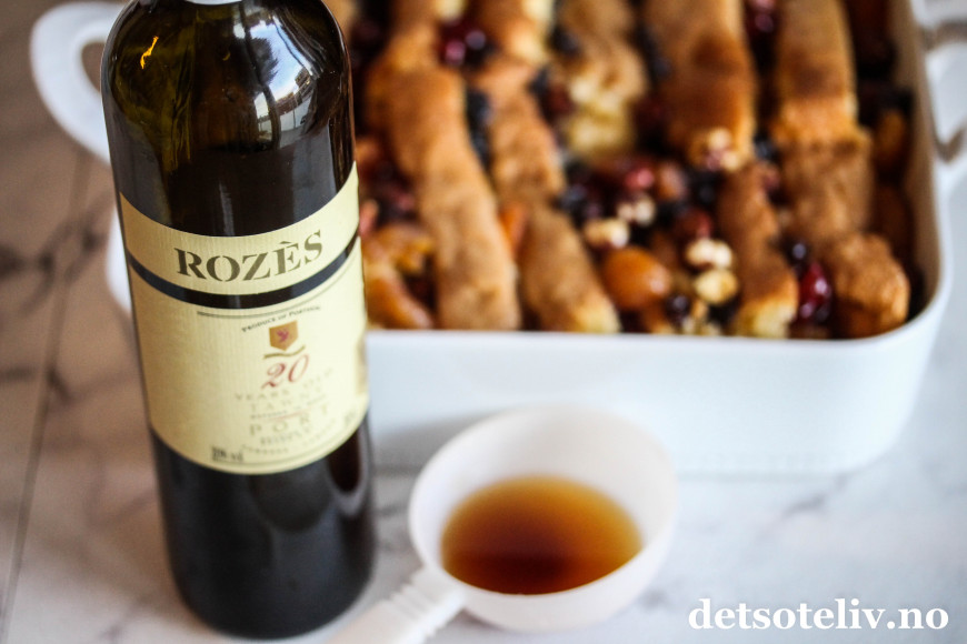 I stedet for brød brukes det her et søtt og luftig sukkerbrød, som først dynkes med portvin (eller rom) og deretter overhelles med en eggeblanding som inneholder både en god skvett fløte og mye, ekte vanilje.