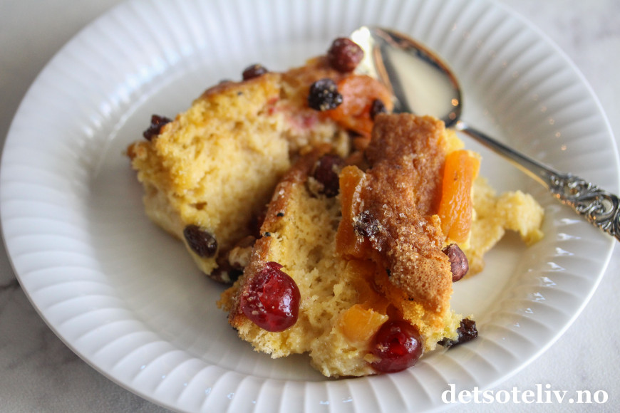 Desserten er som en lux-versjon av Brødpudding, som finnes i mange varianter her på Det søte liv.