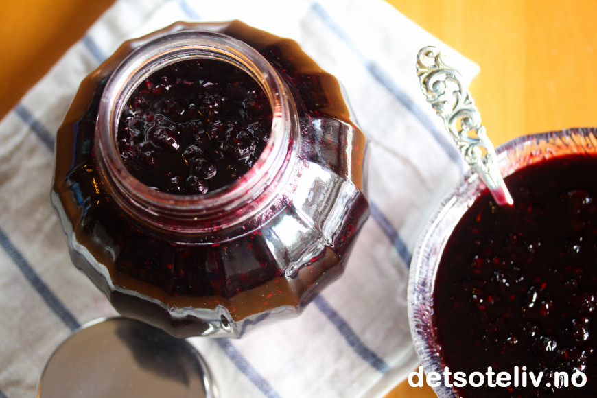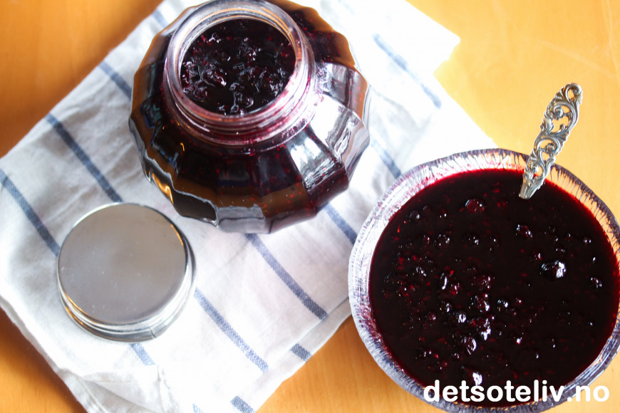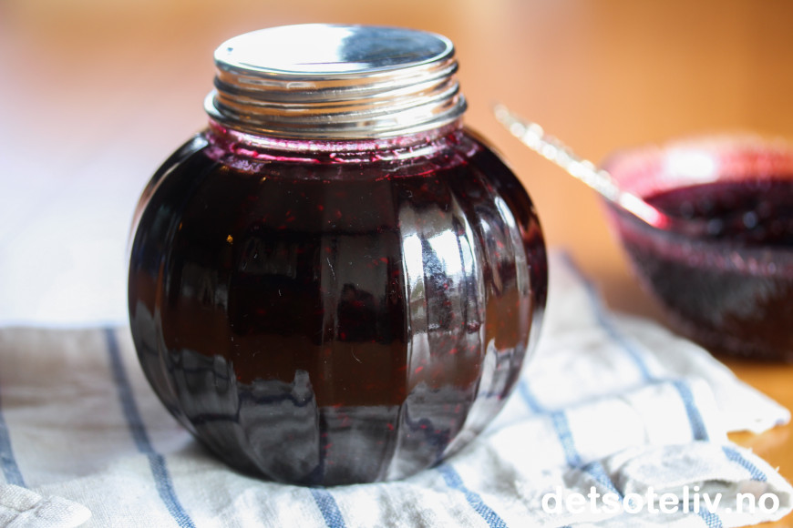 Her er et tips om et nydelig syltetøy laget med bringebær og blåbær, som ofte kalles for "Dronningsyltetøy".
