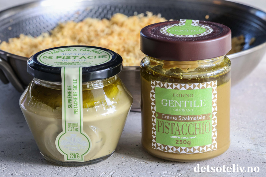 ♥ Jeg har brukt ferdigkjøpt pistasjkrem. Du får kjøpt dette i ulike delikatesseforretninger (jeg kjøpte blant annet disse HER hos Olivenlunden). Du kan alternativt bruke hjemmelaget pistasjkrem som du finner oppskrift på HER på Det søte liv.