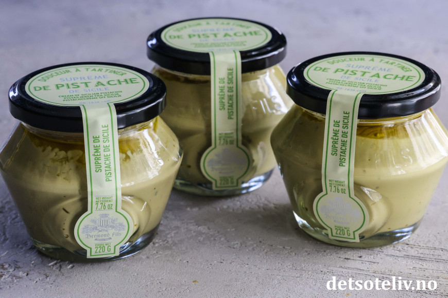 ♥ Jeg har brukt ferdigkjøpt pistasjkrem. Du får kjøpt dette i ulike delikatesseforretninger (jeg kjøpte blant annet disse HER hos Olivenlunden, som inneholder 220 gram per glass). Du kan alternativt bruke hjemmelaget pistasjkrem som du finner oppskrift på HER på Det søte liv.