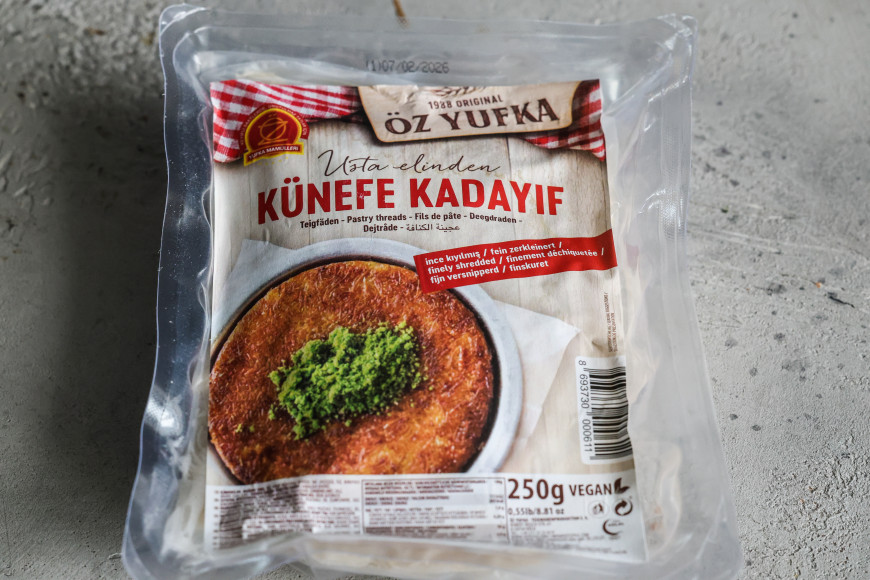 ♥ Kadayif er supertynn, finstrimlet filodeig, som brukes i flere type desserter og bakverk i Midtøsten. Kadayif fås foreløpig ikke kjøpt i vanlige norske matbutikker, men i mange utenlandske matbutikker (se i kjøledisken eller i fryseren). Kadayif har flere måneders holdbarhet i kjøleskapet.