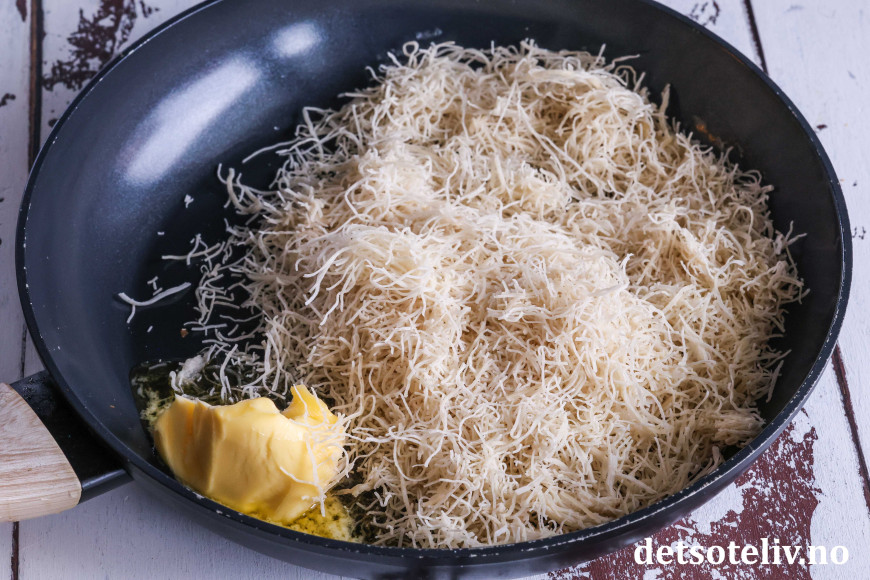 Stek på middels varme slik at deigen blir gyllenbrun og sprø. Vend rundt på deigen mens den steker slik at den ikke svir seg.