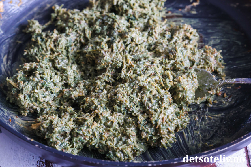 Slå av varmen på platen. Ha pistasjkrem pannen.