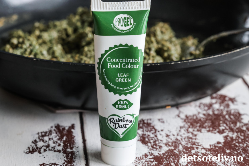 ♥ Det er ikke nødvendig, men fyllet får en mer delikat grønnfarge dersom du tilsetter litt konsentrert konditorfarge.