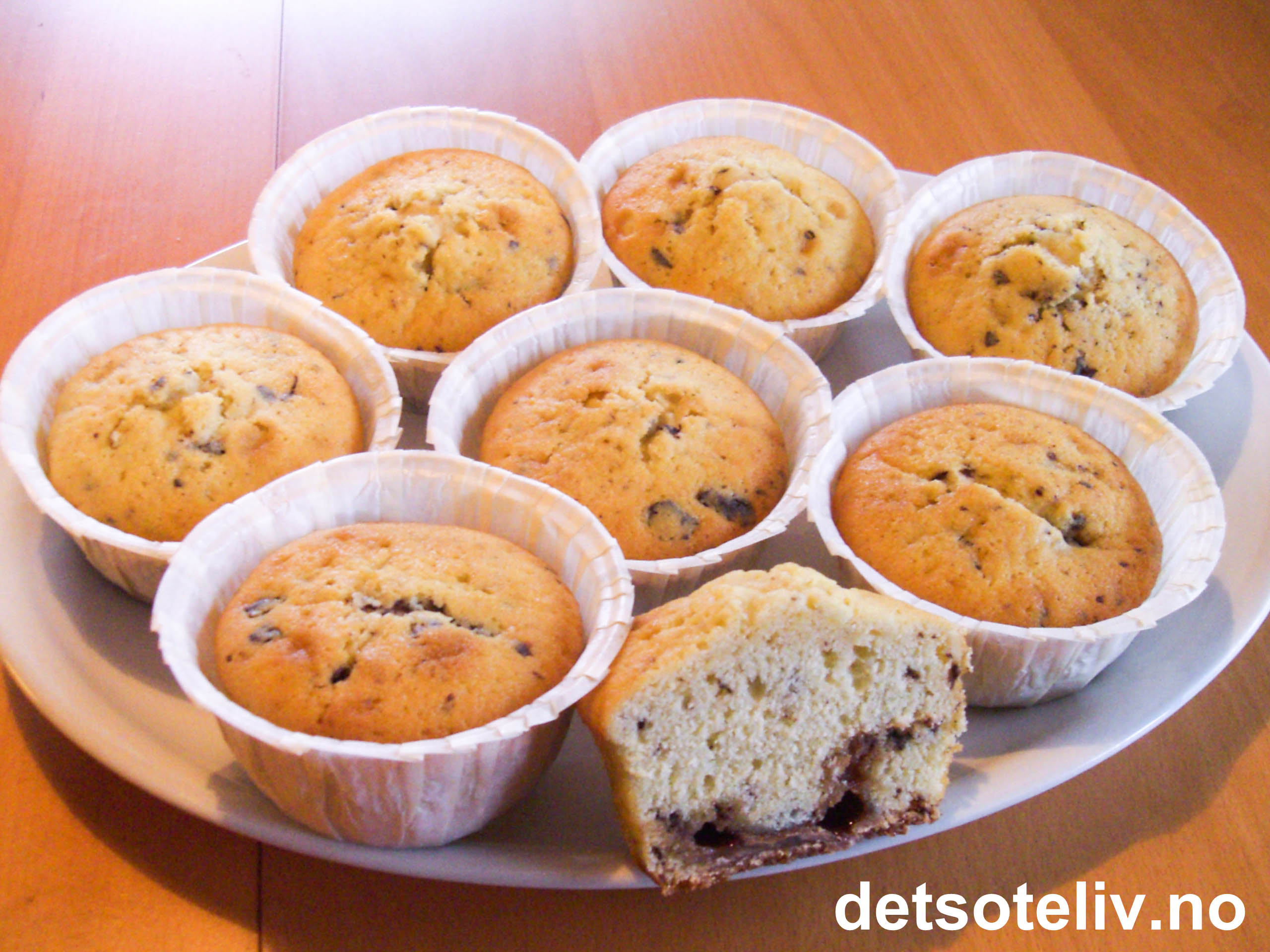 Muffinsene kan pyntes med sjokoladeglasur, et melisdryss eller serveres slik de er.