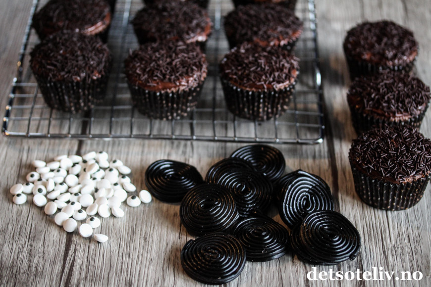 Vil du bake noe morsomt og lettvint til Halloween uten at kaken ser for avskrekkende ut, er disse søte Edderkoppmuffinsene et supert tips! Du tryller dem enkelt frem med noen sukkerøyne, sjokoladestrøssel og lakrislisser.