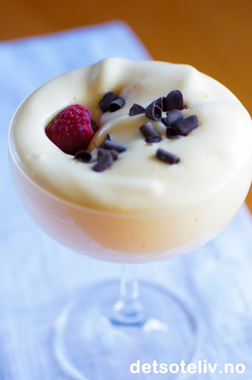 Jeg pisket min i nesten 20 minutter, men eggedosisen kan selvsagt brukes uten så lang pisking også. Men 5 minutter ville jeg nok i hvert fall pisket den.