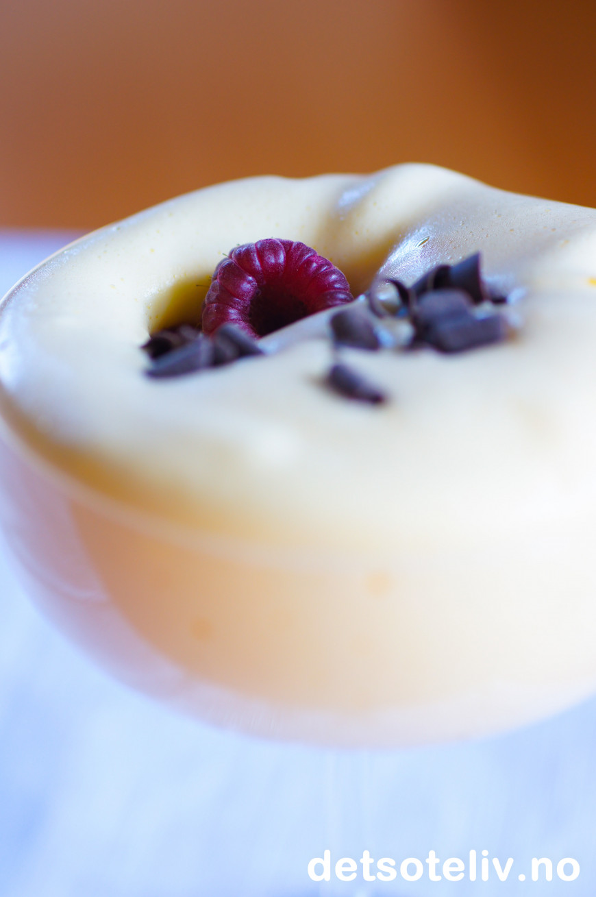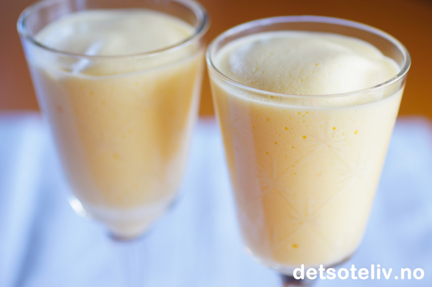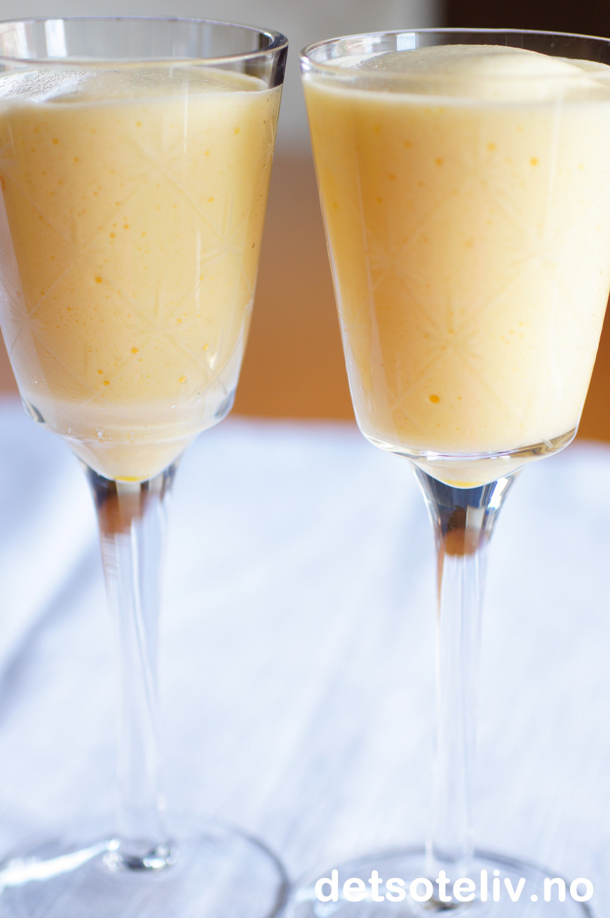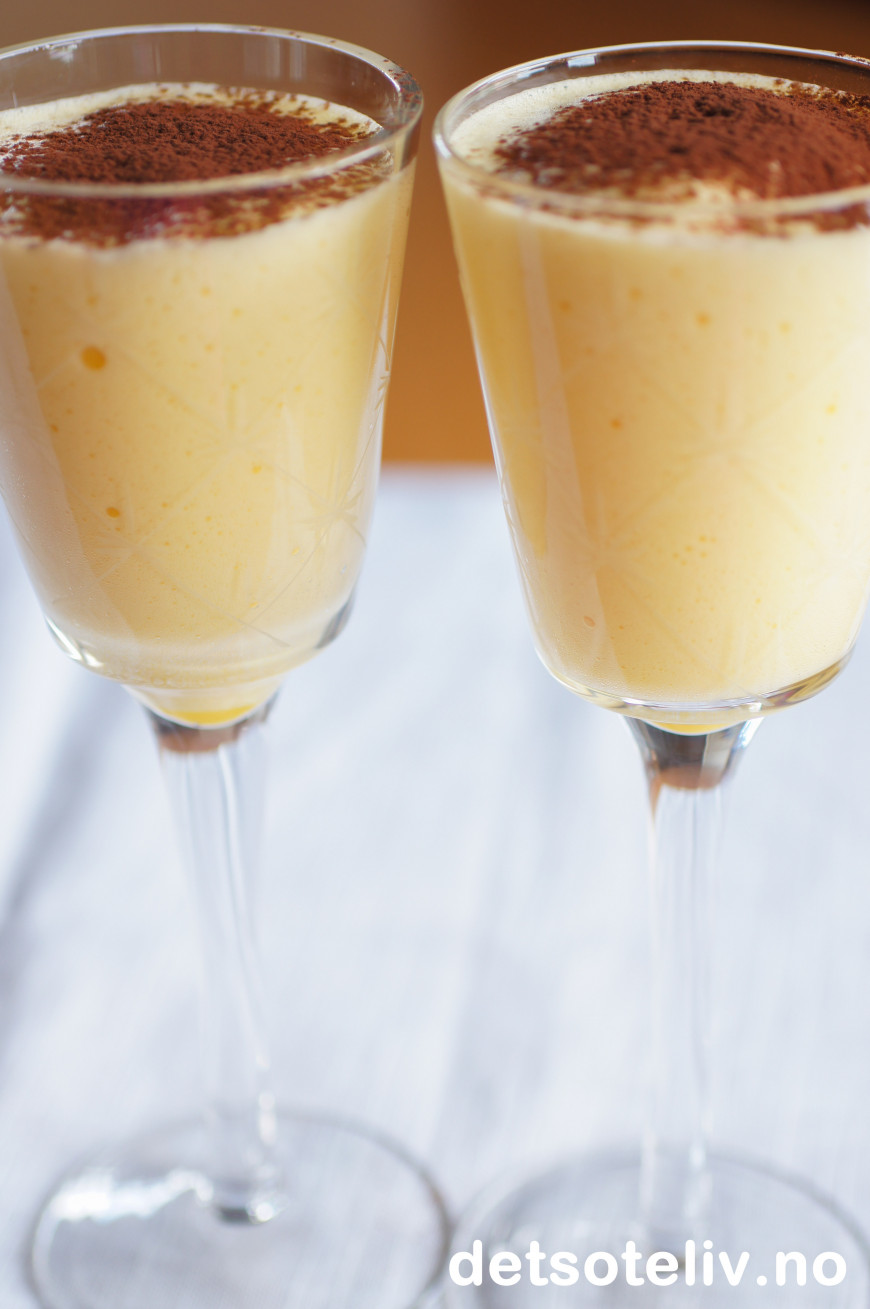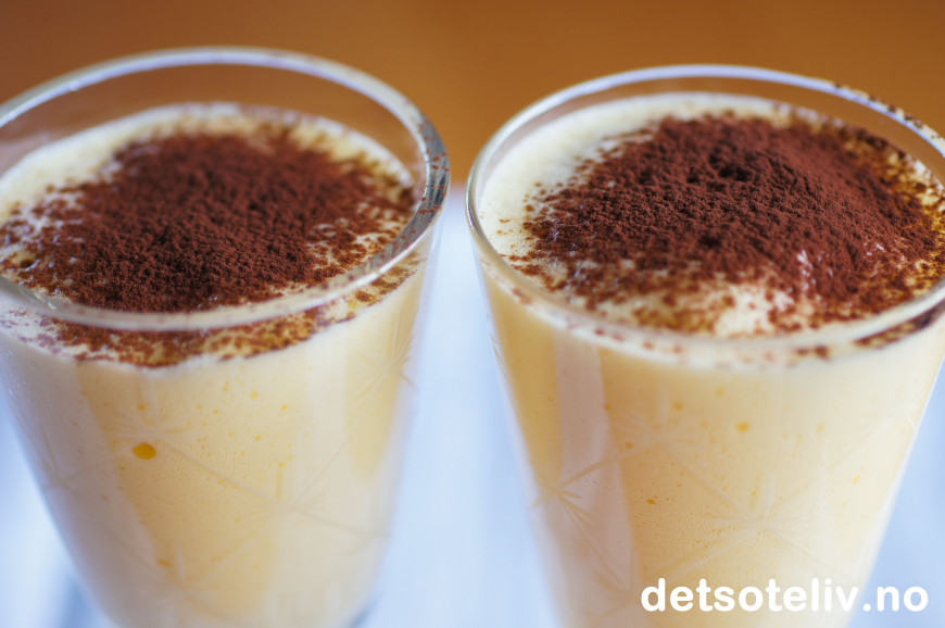 Hell eggedosisen i egnede glass eller skåler og server med en gang!
