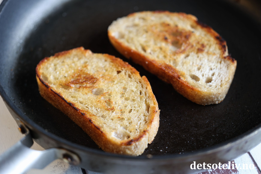 Smør brødskivene med smør på begge sider. Stek dem i stekepanne på begge sider til brødene blir gylne og sprø.