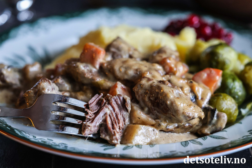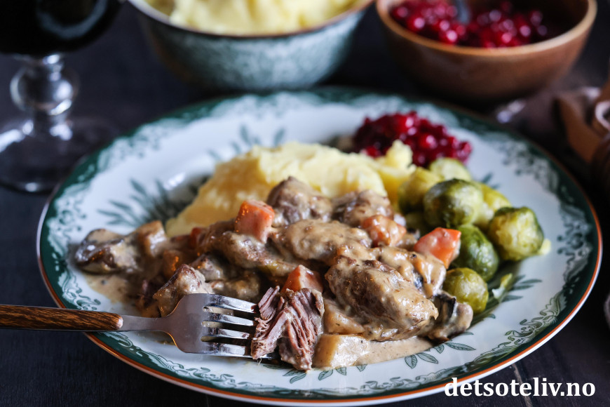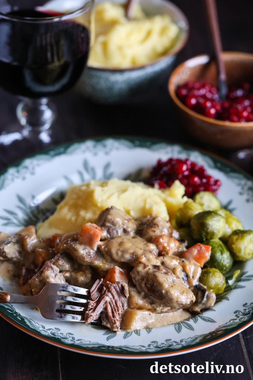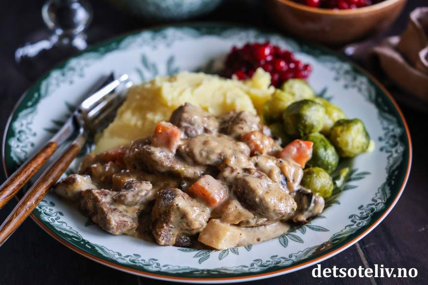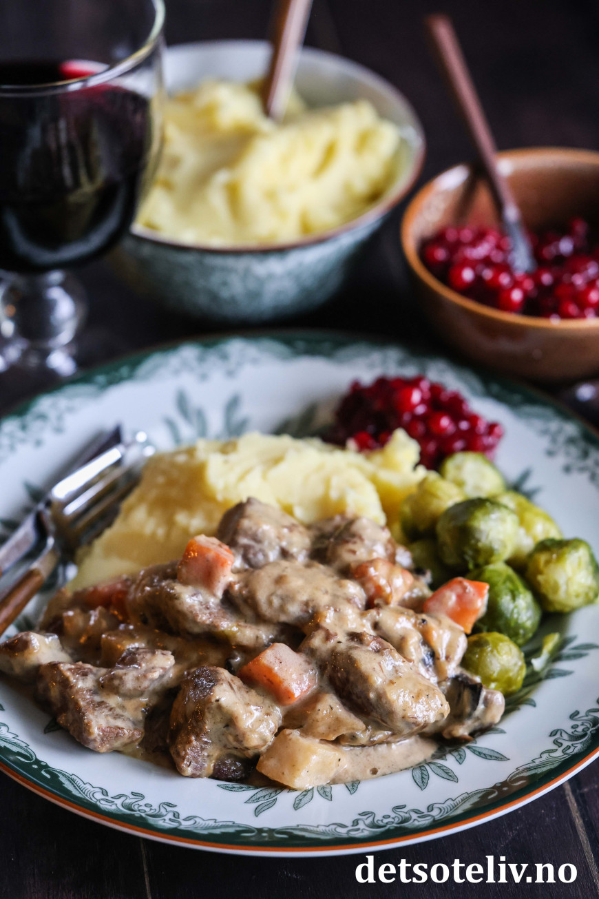 ♥ Potetmos: Jeg brukte oppskriften som du finner HER. Alternativt går det også fint å servere kokte poteter til elggryten.