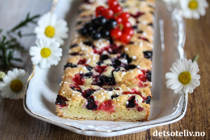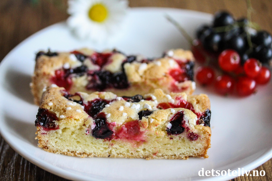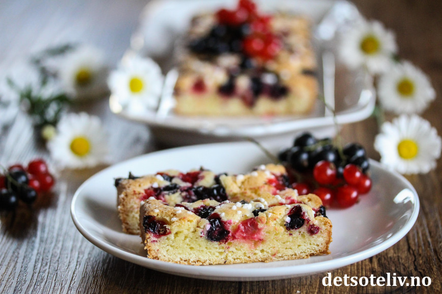 ♥ I stedet for en kombinasjon av rips og solbær, kan du bruke bare en av delene. Det går også fint å lage kaken med blåbær, bringebær eller andre bær.