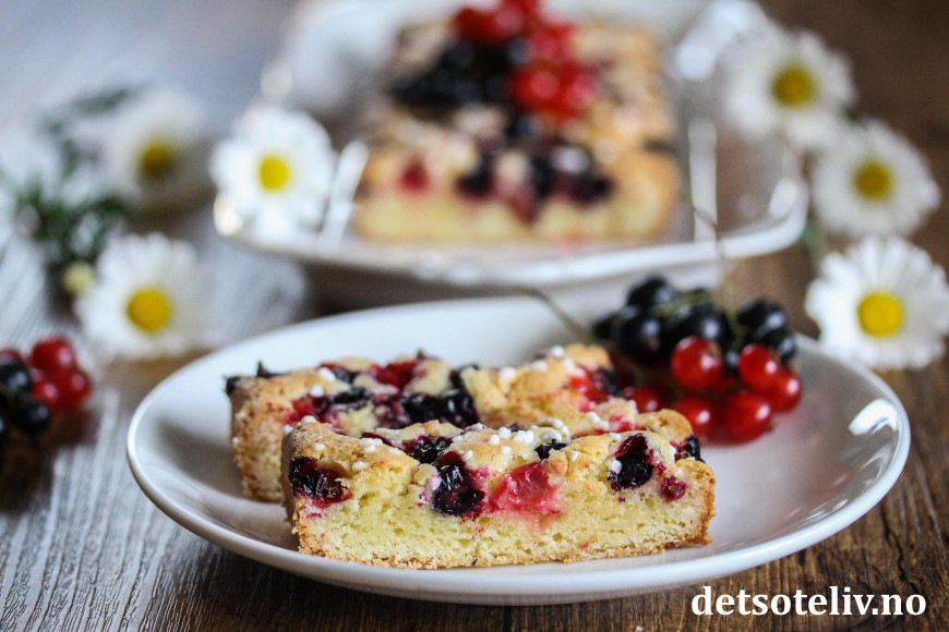 Den søte og småseige kaken er nydelig med syrlige rips og solbær.