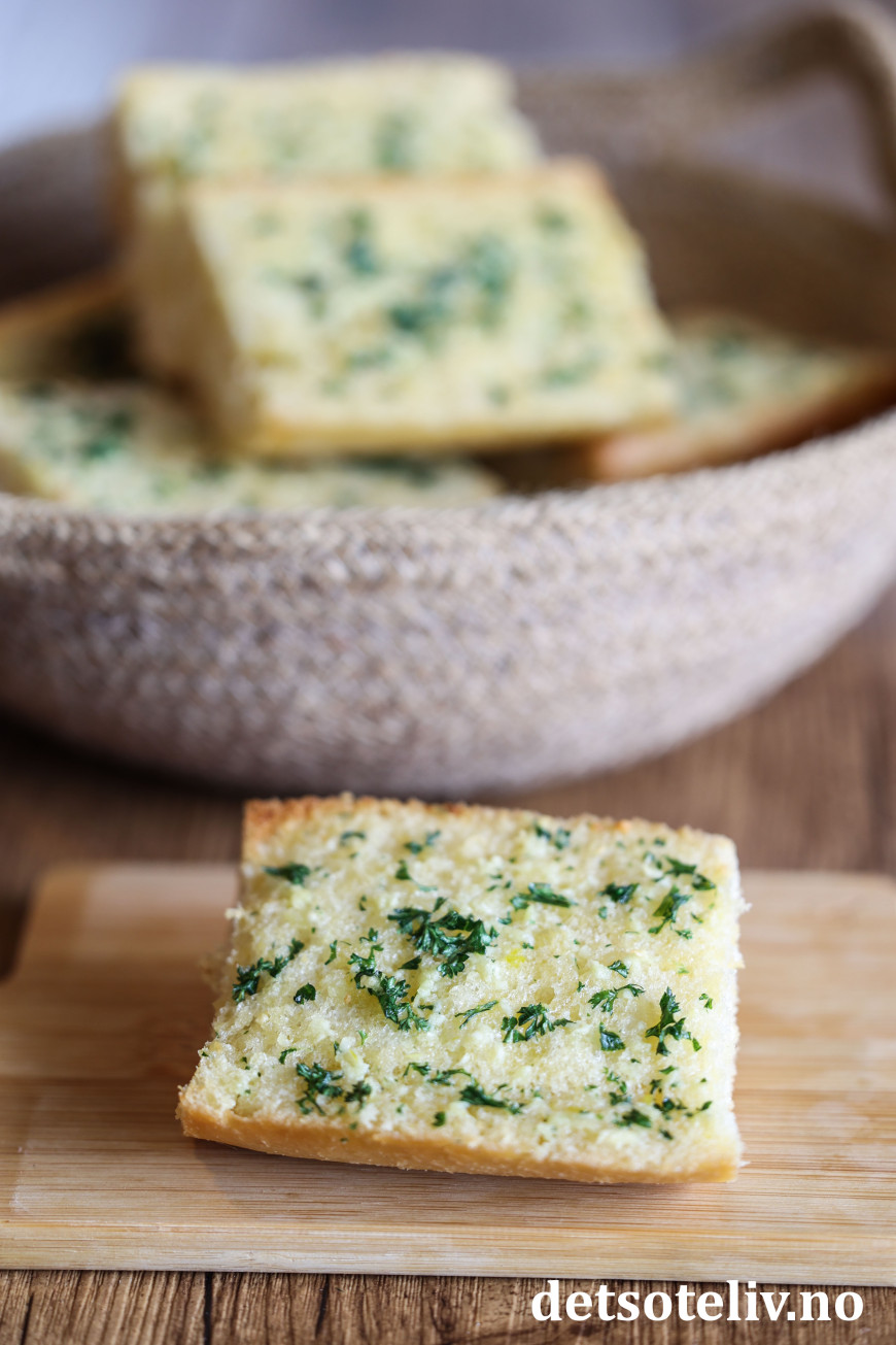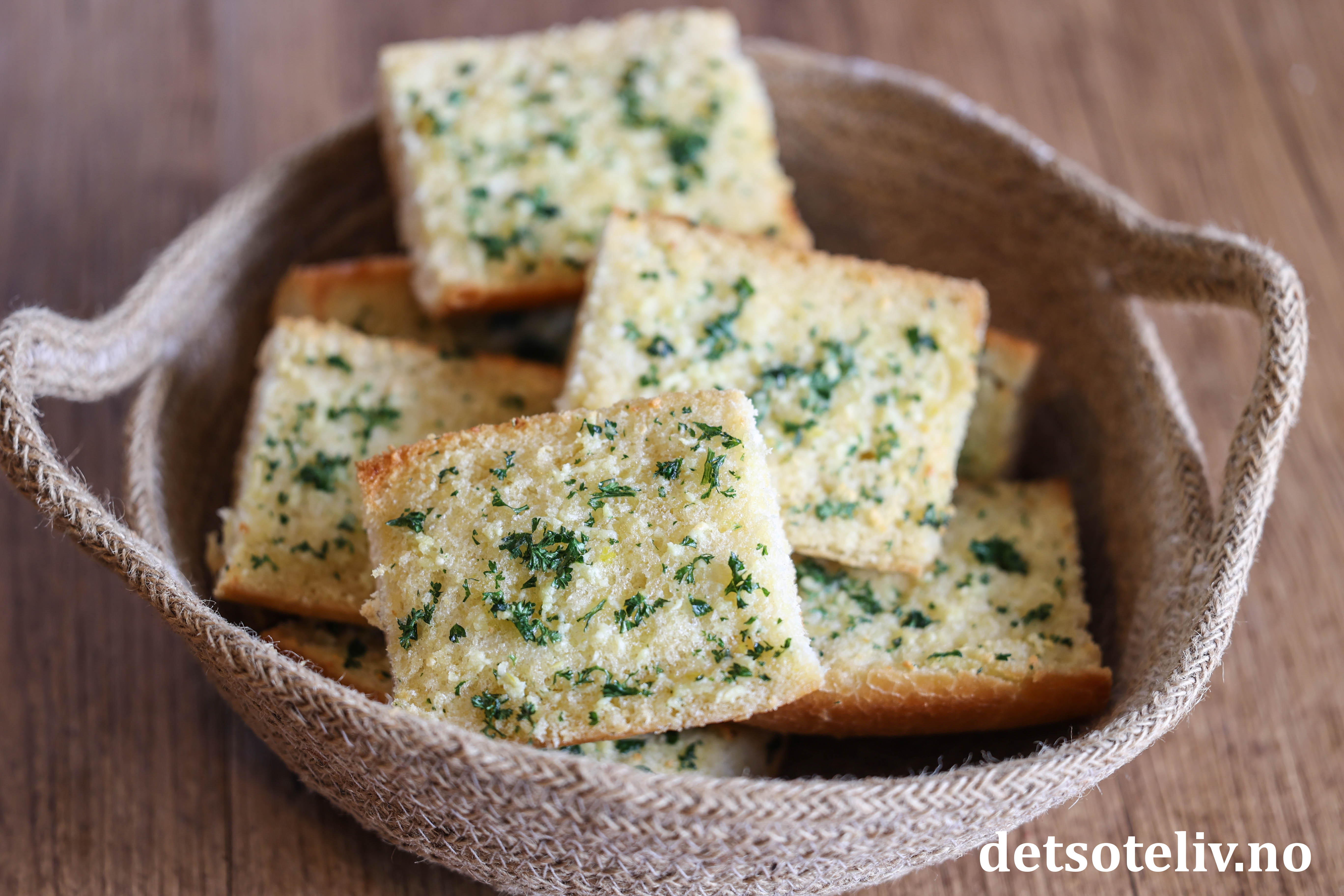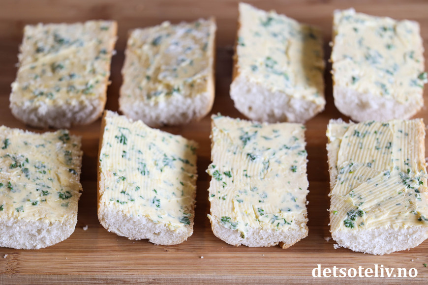 Så lett forvandler du en baguette til deilige hvitløks- og persillebrød!