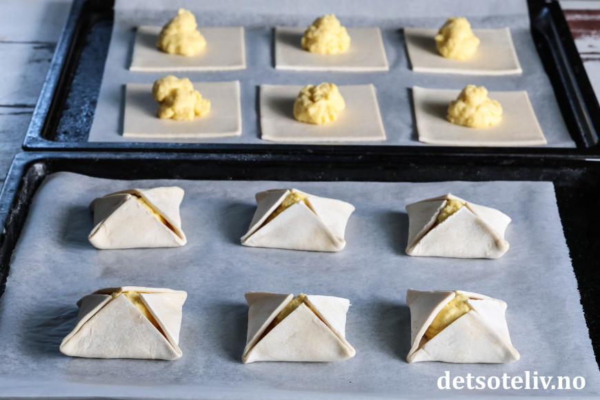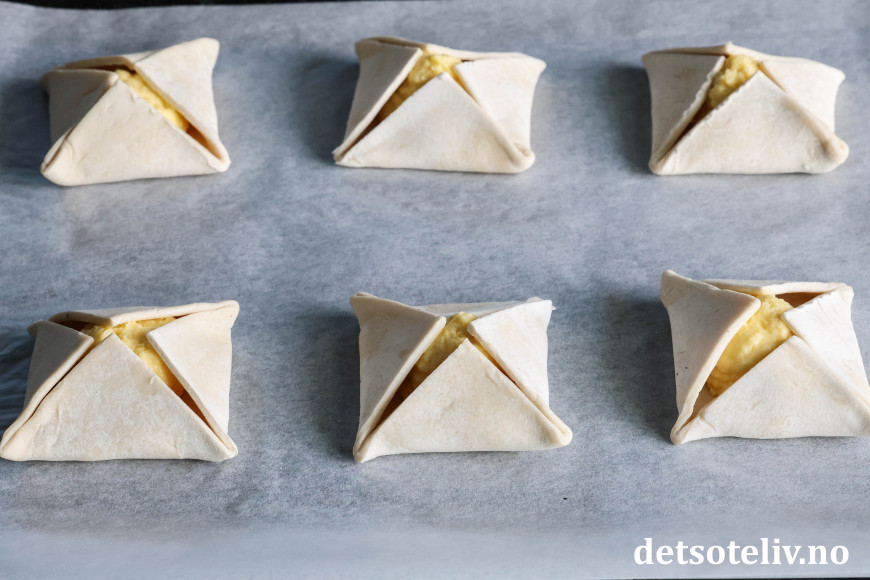 Brett hjørnene inn mot midten slik at fyllet dekkes helt av hjørnene.