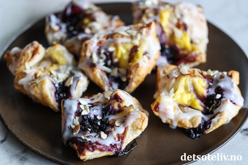 Dette er en favoritt som jeg stadig vender tilbake til 😍, se Enkle wienerbrød med marsipan og bringebær, Enkle wienerbrød med eple og Enkle wienerbrød med vaniljekrem.