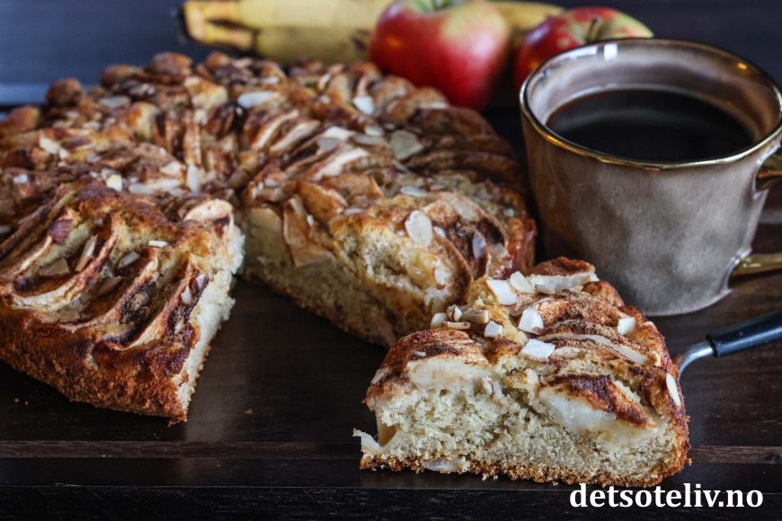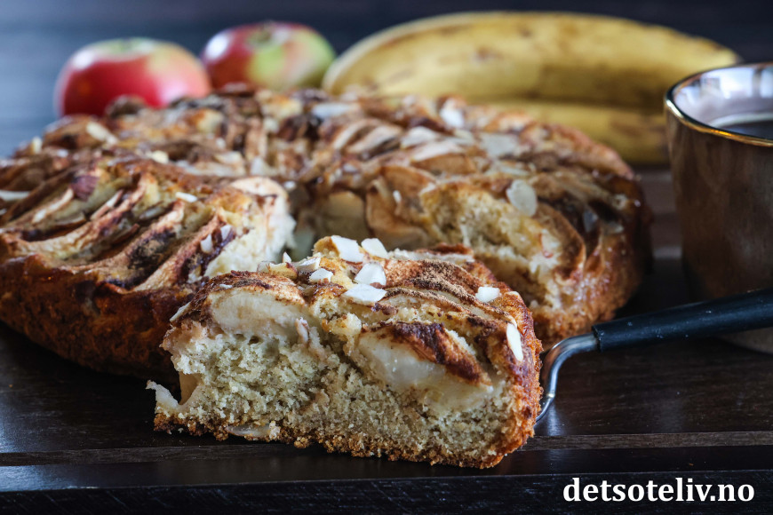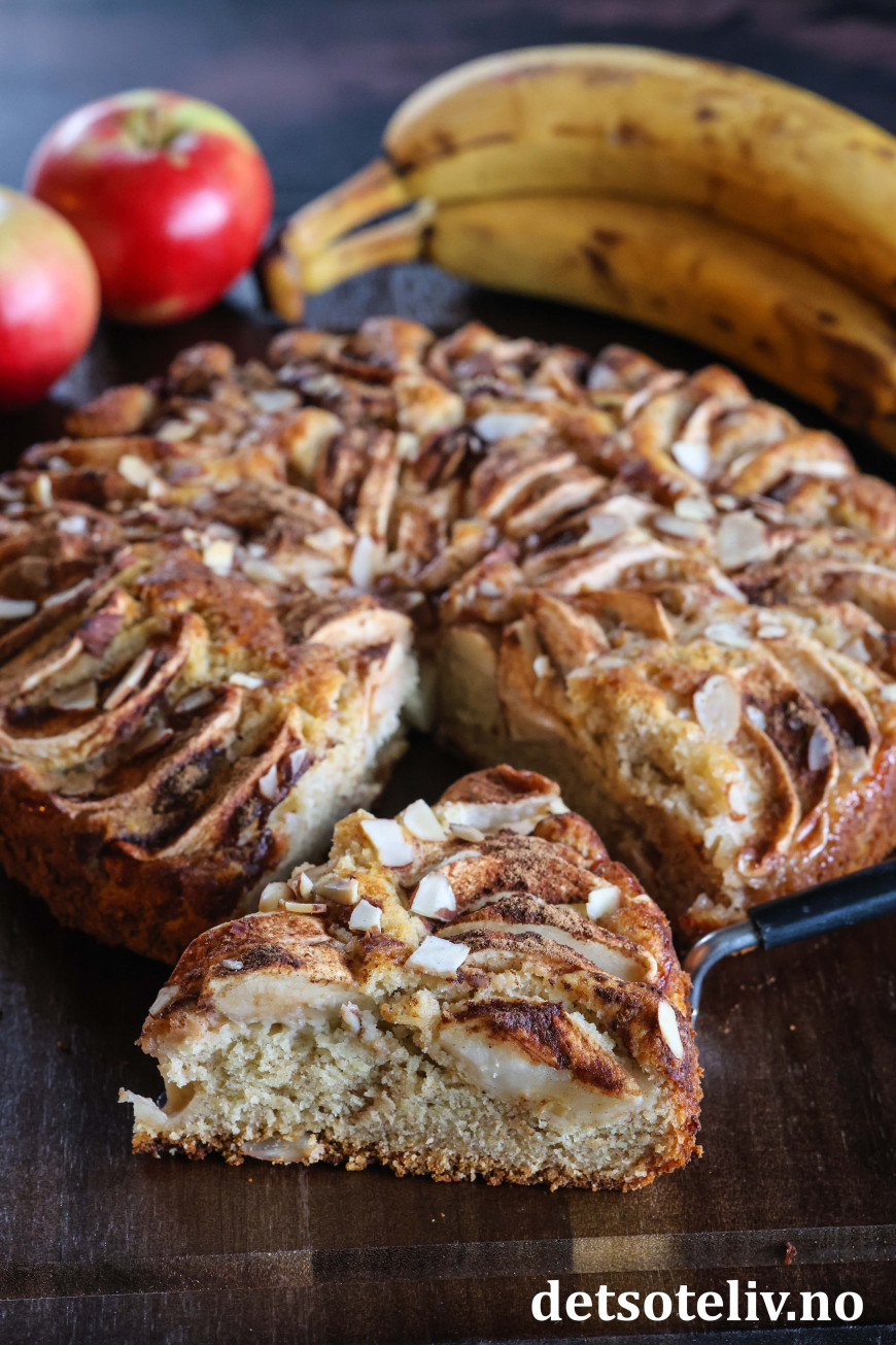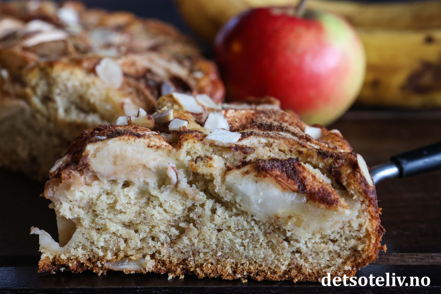 Denne saftige kaken får fin sødme av banan, som passer veldig godt til smaken av epler og kanel.