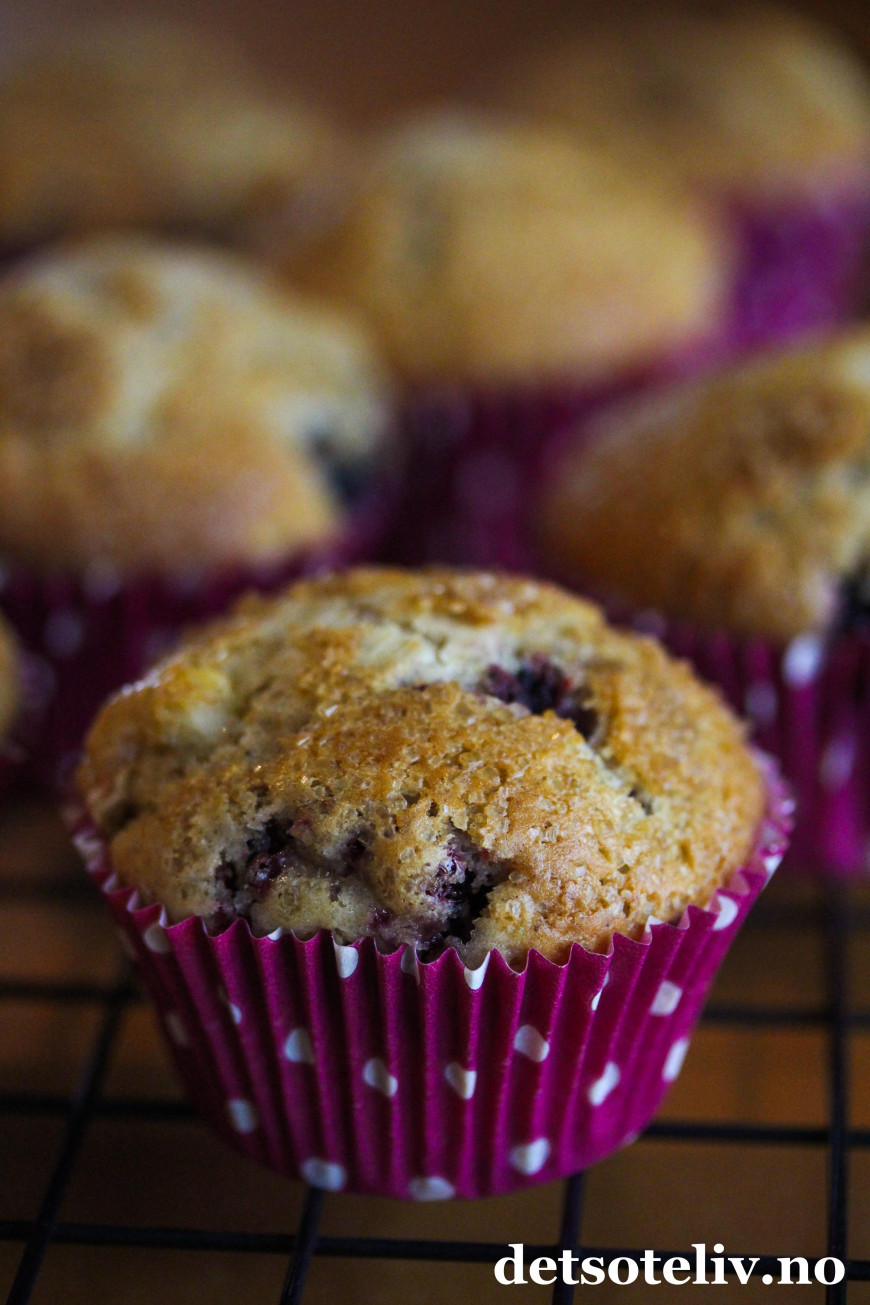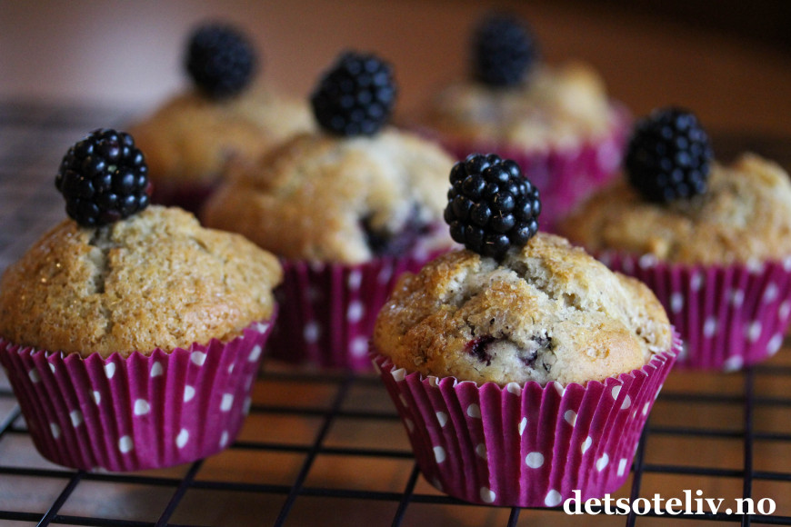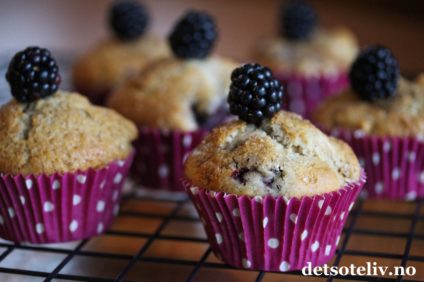 ♥ Pynt de ferdige muffinsene med bjørnebær hvis du vil gjøre dem ekstra festlige, men det er ikke nødvendig.