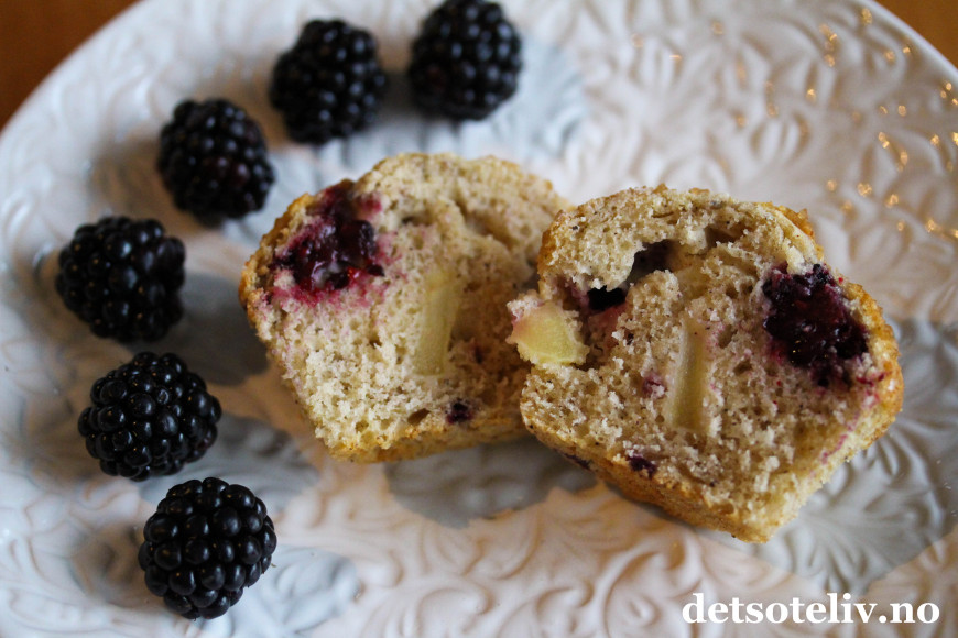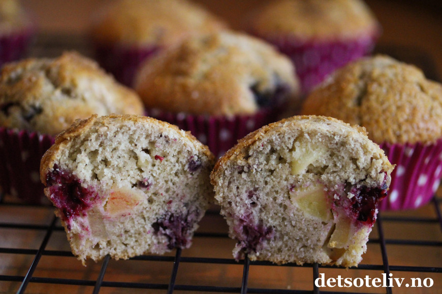 Mmmm, saftige og kjempegode muffins med smak av eple, bjørnebær og kanel...