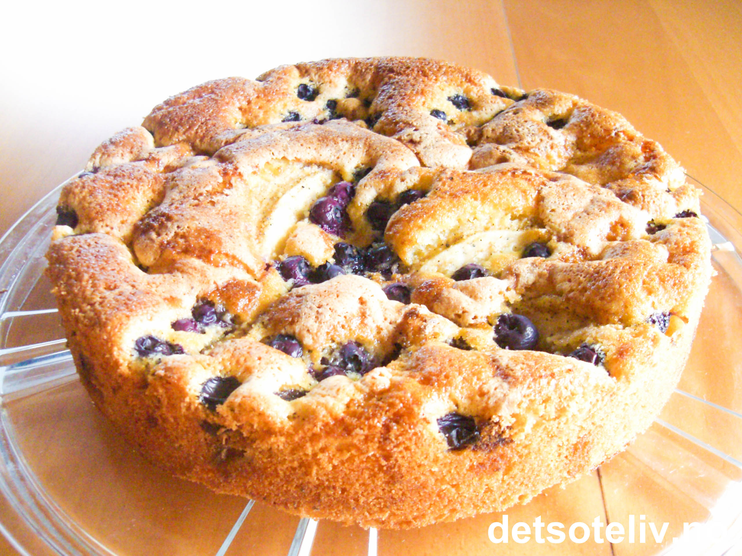 "Eplekake med blåbær" smaker nydelig nystekt med vaniljesaus, krem og/eller vaniljeis.