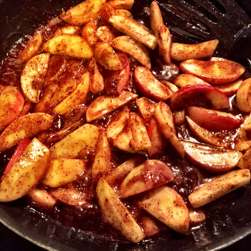 Varm opp til eplebitene i noen minutter til de blir møre og karamelliserte.