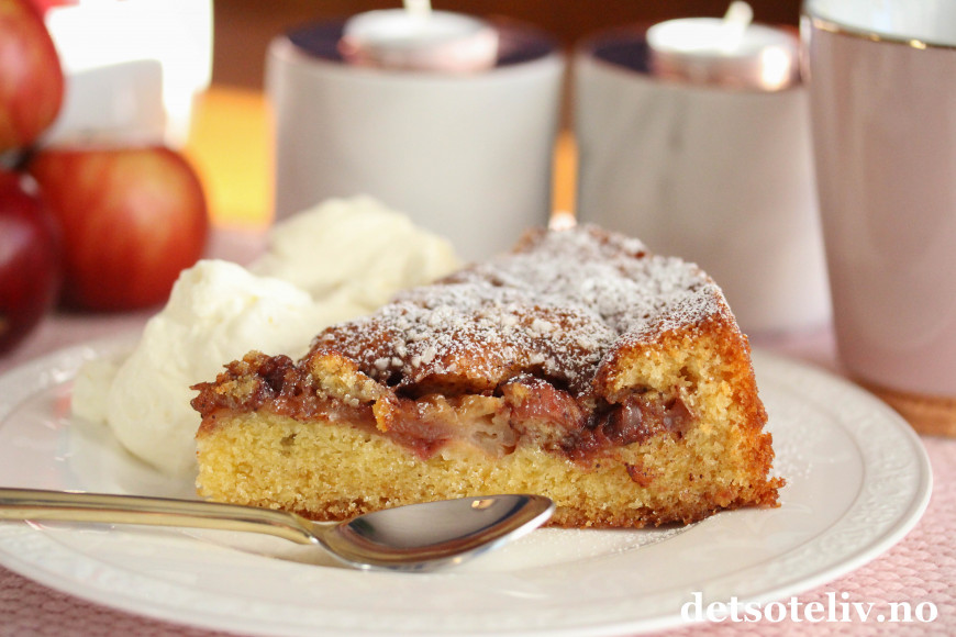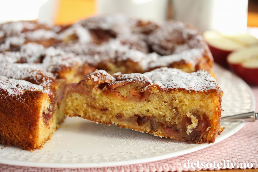 ♥ Eplekaken holder seg myk i flere dager om den pakkes godt inn i plast. Kaken er også fin å fryse.