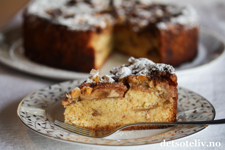 Nydelig, saftig, spennende eplekake med revet kransekakemasse i deigen!