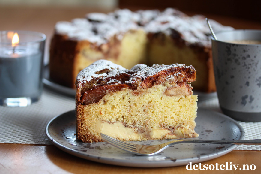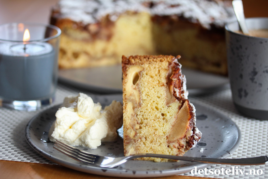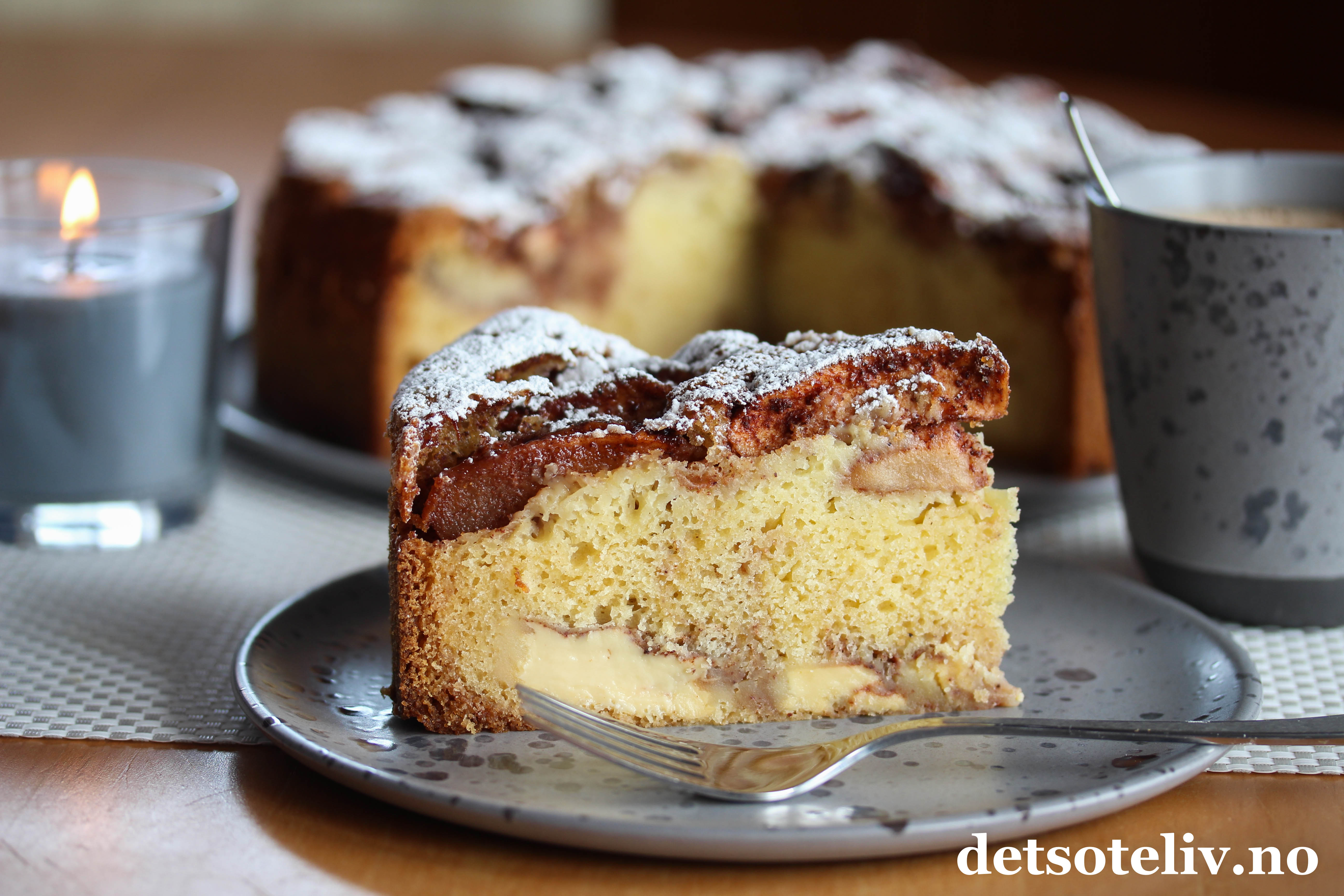 Se også oppskrift på de kjempepopulære kakene "Eplekake med vaniljekrem" og "Eplebiter med vaniljekrem" her på Det søte liv.