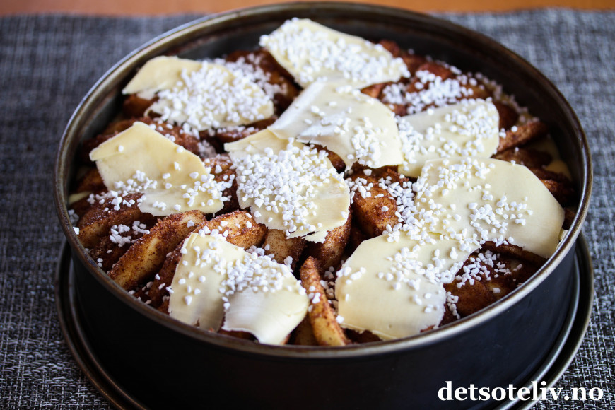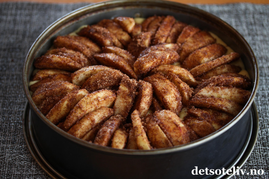 Se også oppskrift på "Eplekake med vaniljekrem" og "Eplebiter med vaniljekrem" på Det søte liv.