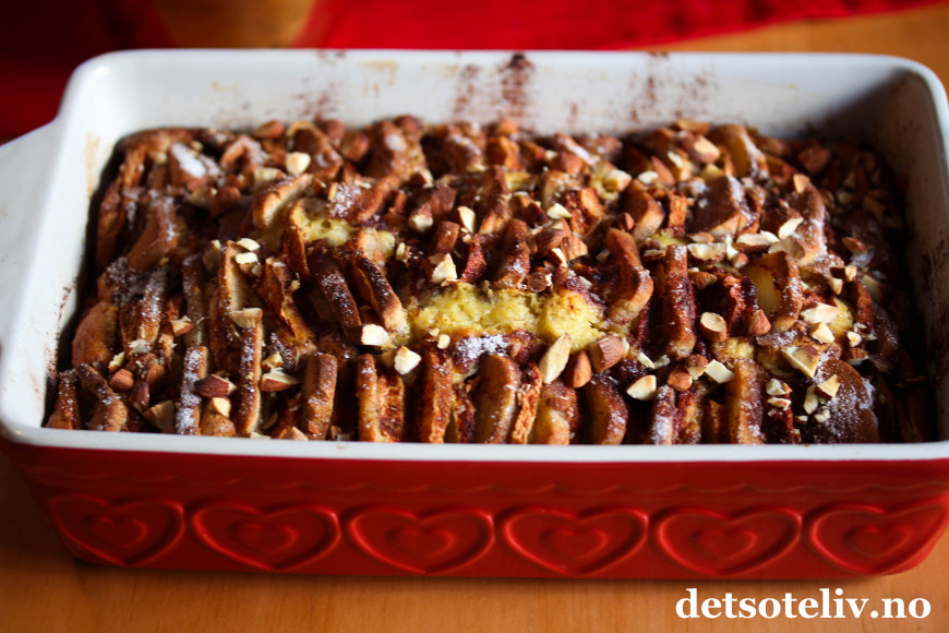 Oppskriften passe til liten langpanne eller til rund form (26 cm i diameter).