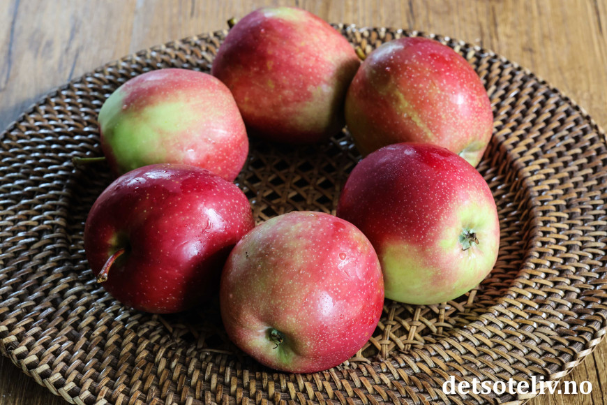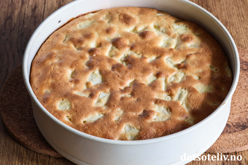♥ Bruk gjerne norske epler som er friske og litt syrlige i smaken. Husk at eplebitene ikke bør være for store, ellers synker de til bunns i kaken under stekingen.