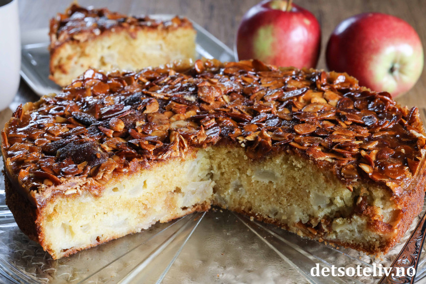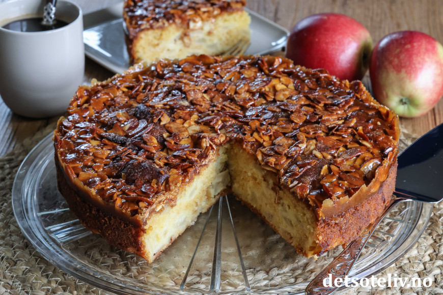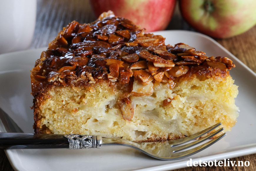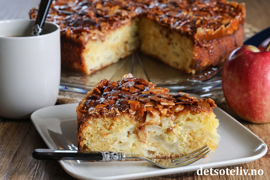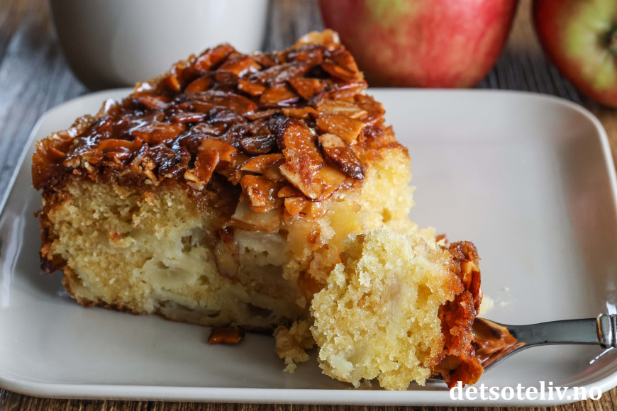 Deilig med den småseige mandelkaramellen på toppen av eplekaken! 😍