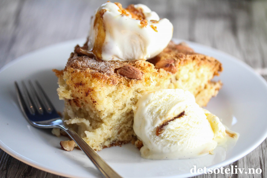 ♥ Server kaken gjerne helt nystekt med iskrem ved siden av. Jeg har her brukt en crème brulée-iskrem, som er en favoritt hjemme hos meg.