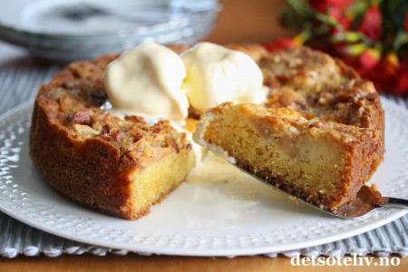 Kaken smaker nydelig servert lunken med vaniljesaus eller iskrem.