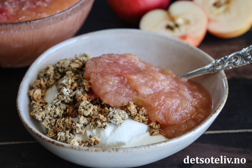 Se også oppskrift på Rosa eplesyltetøy og klassisk Eplemos.