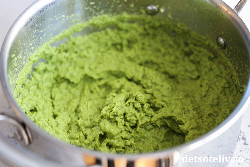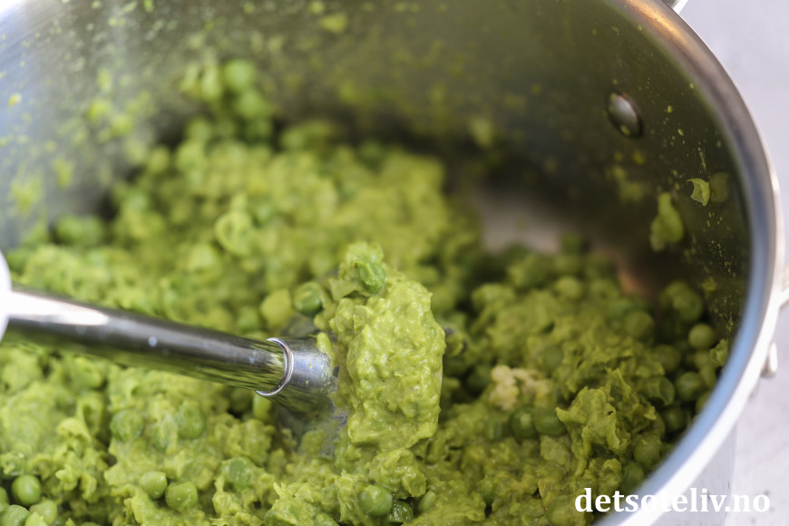 ♥ En annen spennende vri er å blande 50 gram revet parmesan i den varme ertepuréen.