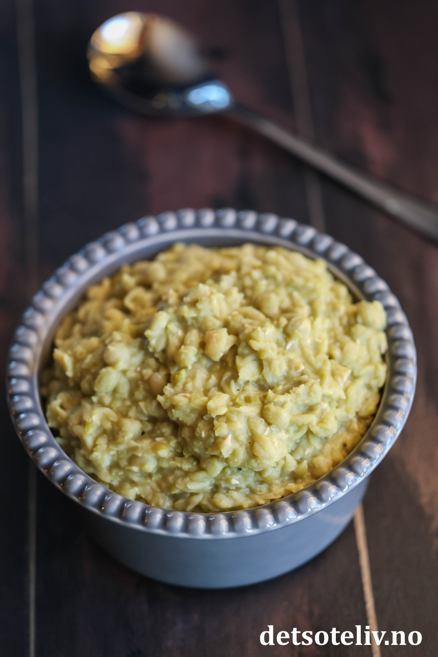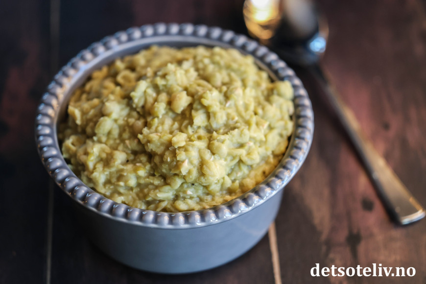 Ertestuing laget på tørkede, grønne erter er billig og mettende tilbehør til flere typer middager.