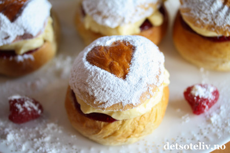 "Fastelavnsboller med vaniljekrem og bringebær" er skikkelige luksusboller!