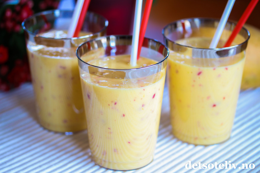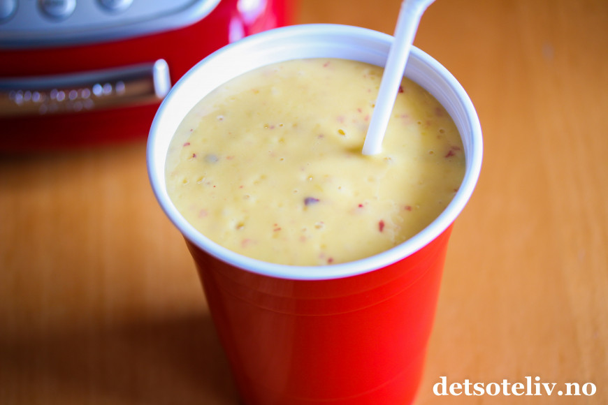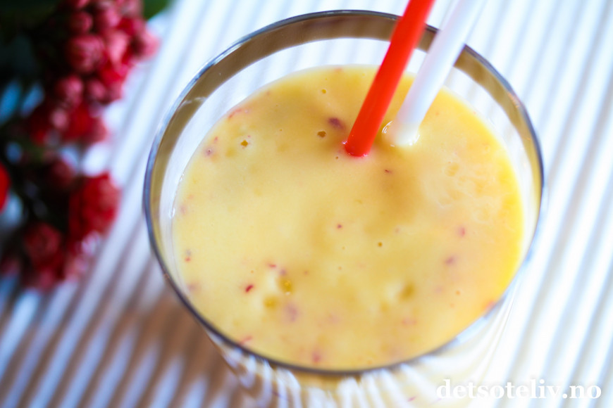 Tropisk, søt og fruktig smoothie med smak av fersken og mango!