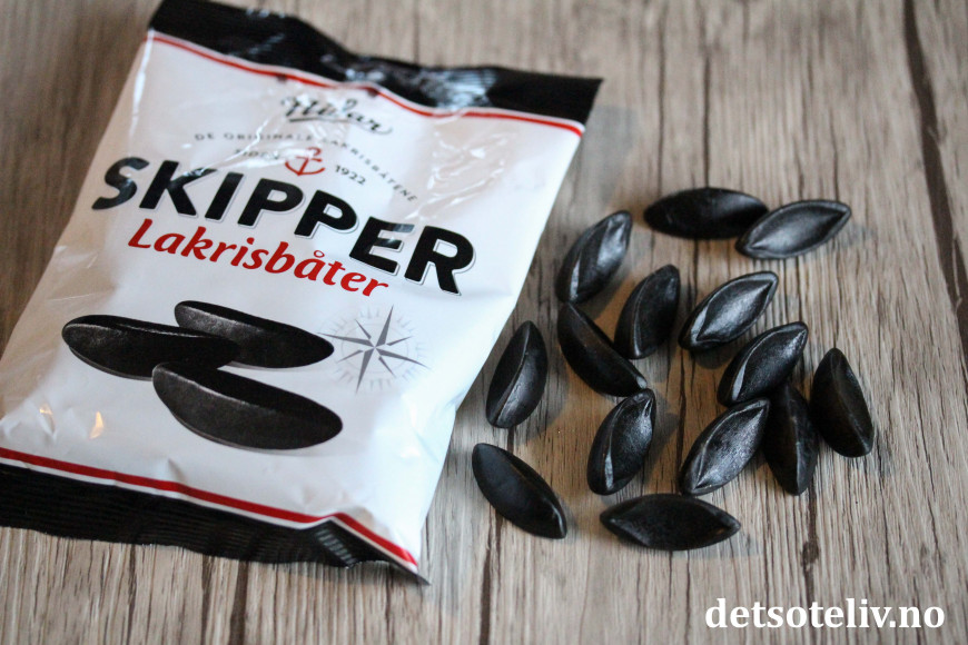 ♥ Til lakrisgeléen har jeg brukt lakrisbåter fra Nidar. Du trenger 2 poser til denne oppskriften.