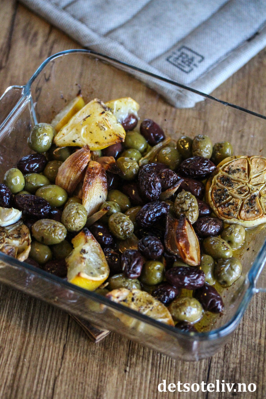 Følg med på olivenene under stekingen og snu litt rundt på dem underveis, så de ikke blir for tørre. Hell eventuelt over litt ekstra olivenolje.