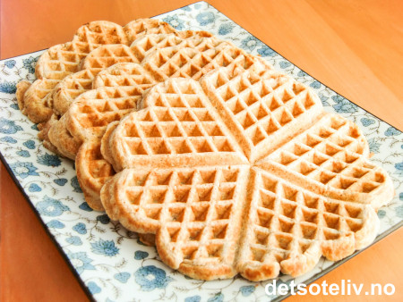 Stek gyldne vafler i smurt vaffeljern på middels varme. Avkjøl vaflene på rist.