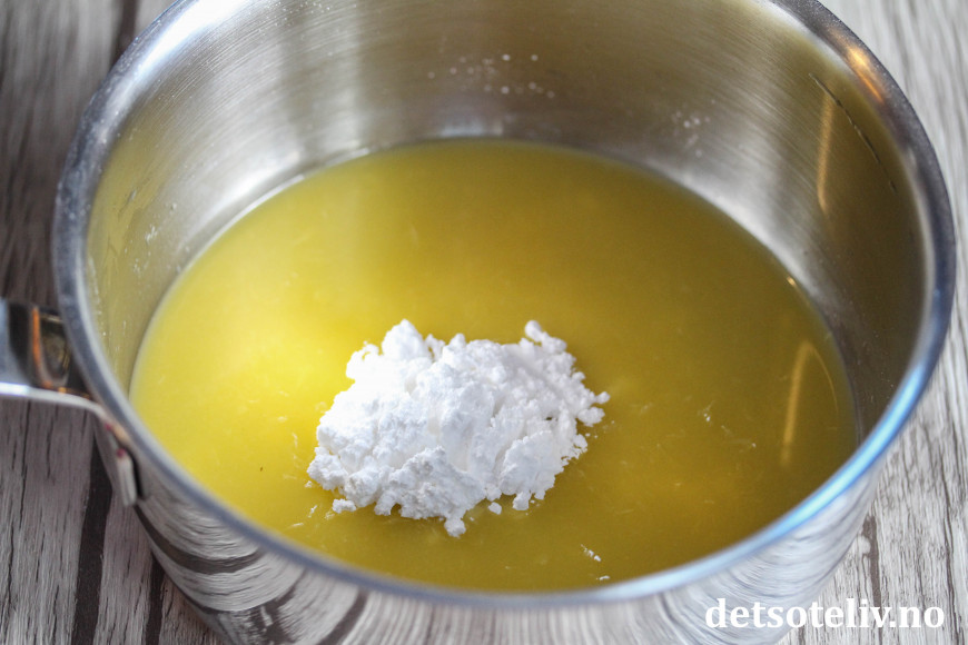 Ta kjelen av platen og tilsett oppdelt Firkløver med appelsinsmak. La sjokoladen smelte i den varme juicen. Rør glasuren jevn.